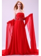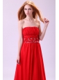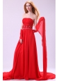 Informal Empire Strapless Chiffon Hand Made Flowers Brush Train Red Prom Dress