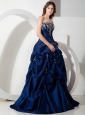 Home >  Prom Dresses >  Beautiful Prom Dresses > Informal Royal Blue A-line Strapless Floor-length Taffeta Appliques Prom Dress