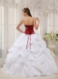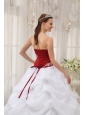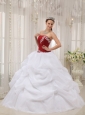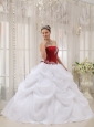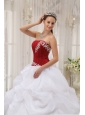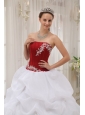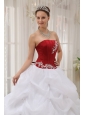 Home >  Quinceanera Dresses >  15 Quinceanera Dresses > Informal White and Wine Red Quinceanera Dress Strapless Taffeta and Organza Appliques Ball Gown