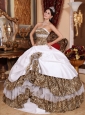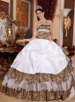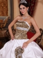 Home >  Quinceanera Dresses >  Unique Quinceanera Dresses > Informal White Quinceanera Dress Strapless Leopard Beading Ball Gown