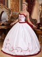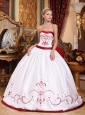 Home >  Quinceanera Dresses >  Discount Quinceanera Dresses > Informal White Quinceanera Dress Strapless Satin Embroidery Ball Gown