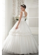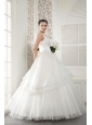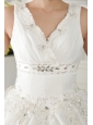 Ivory A-line V-neck Floor-length Organza Beading and Ruch Wedding Dress 226.88 We love fairytale-inspired gowns and are sure the princess in you will love this one, too. It features a wrapped texture on the bodice, two wide straps with lace edge on the top shoulder and beautiful fabric scattering on the waist with beadings accents. The A-line skirt is beautifully shaped and full, created from multiple layers of organza-like fabric above and tulle-like fabric below. The skirt extends to the floor naturally and a corset-style closure completes the design.