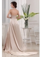 Ivory Prom Dress Empire Halter Brush Train Taffeta Beading and Ruch