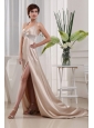 Home >  Prom Dresses >  Popular Prom Dresses > Ivory Prom Dress Empire Halter Brush Train Taffeta Beading and Ruch