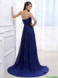 Junior Beading Brush Train Strapless Prom Dresses in Royal Blue