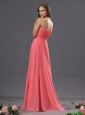 Junior Brush Train Beaded Prom Dresses in Watermelon