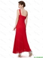 Junior Empire One Shoulder Red Prom Dresses with Beading