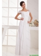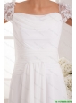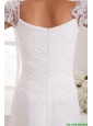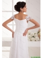 Junior Popular Square Ruching Lace White Prom Dresses with Cap Sleeves
