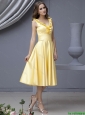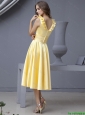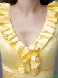 Junior V Neck Yellow Short Prom Dresses with Ruffles for 2015 Autumn