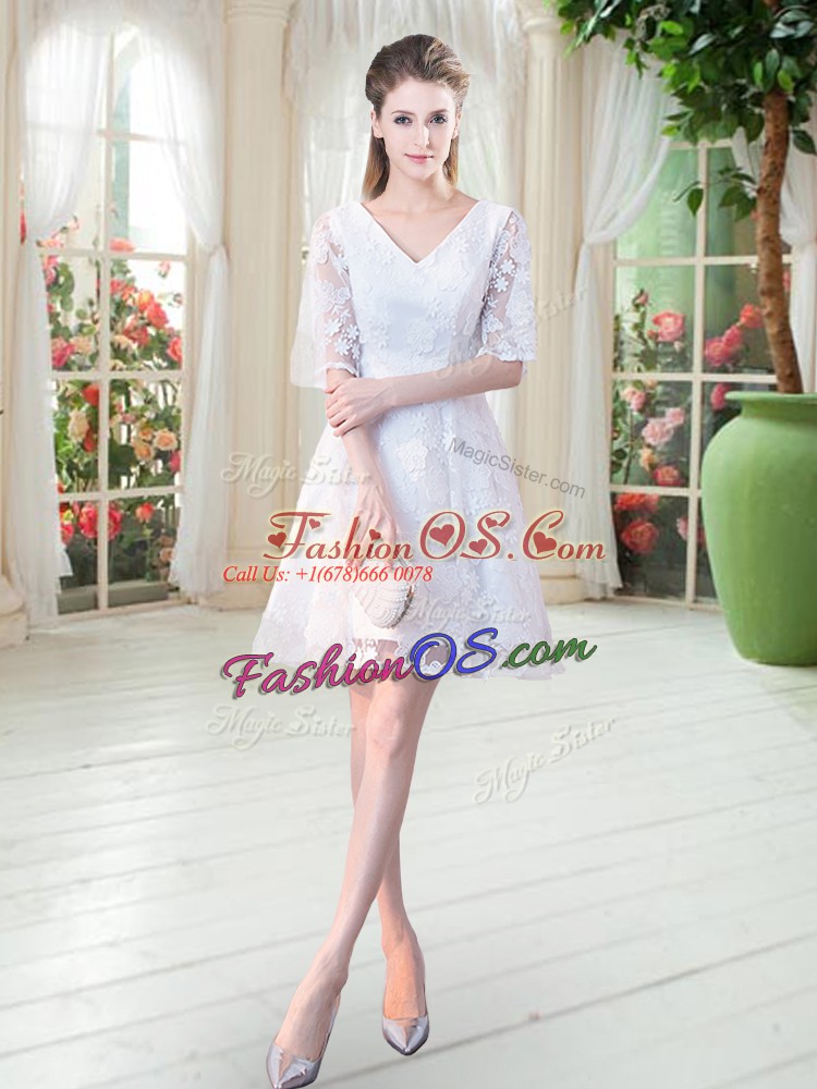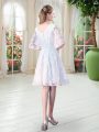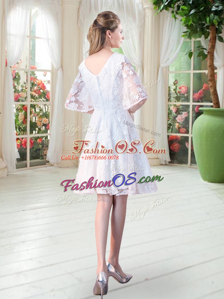 Knee Length A-line Half Sleeves White Prom Dresses Zipper