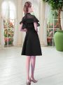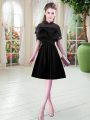 Knee Length A-line Short Sleeves Black Prom Dresses Zipper
