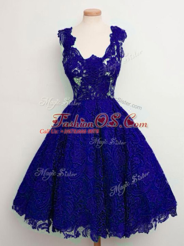 Knee Length A-line Sleeveless Blue Quinceanera Dama Dress Lace Up