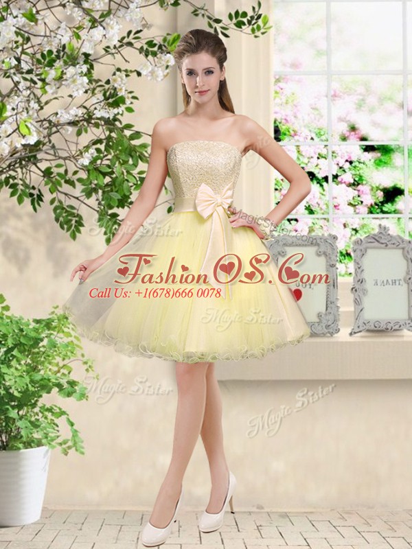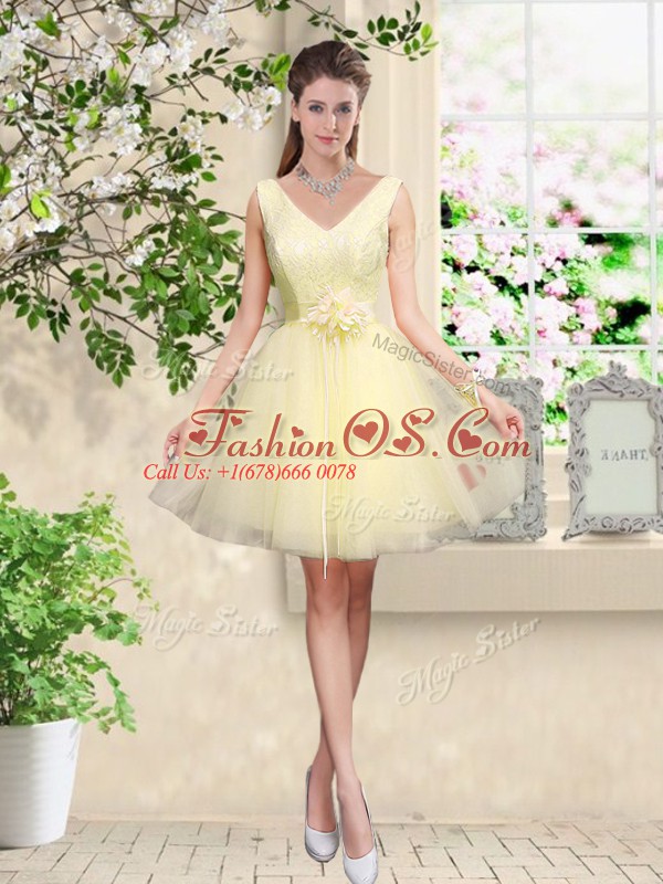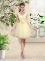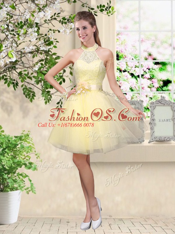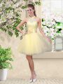 Knee Length A-line Sleeveless Light Yellow Dama Dress for Quinceanera Lace Up