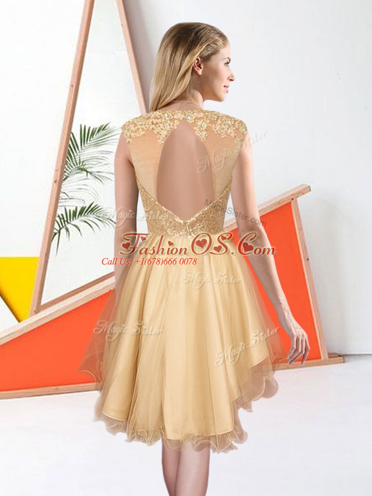 Knee Length Backless Wedding Party Dress for Prom and Party with Beading and Lace