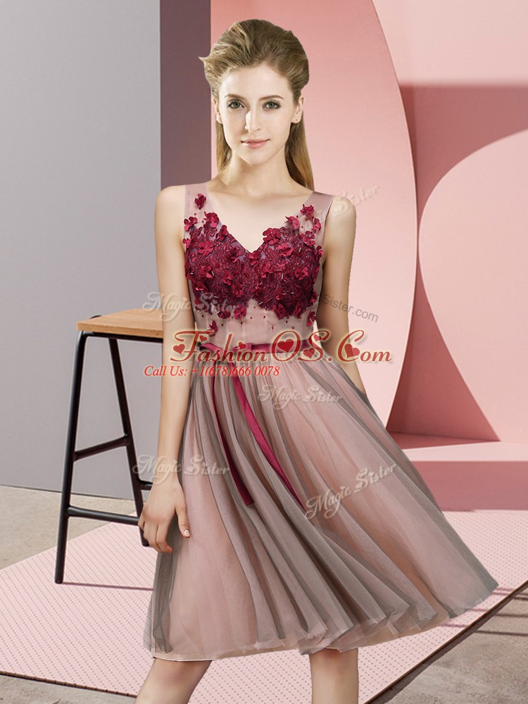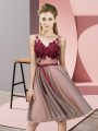 Knee Length Empire Sleeveless Baby Pink Vestidos de Damas Lace Up
