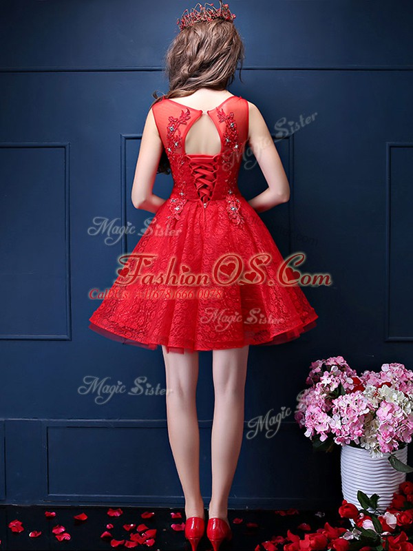 Knee Length Lace Up Bridesmaid Gown Yellow Green for Prom and Party with Beading and Lace