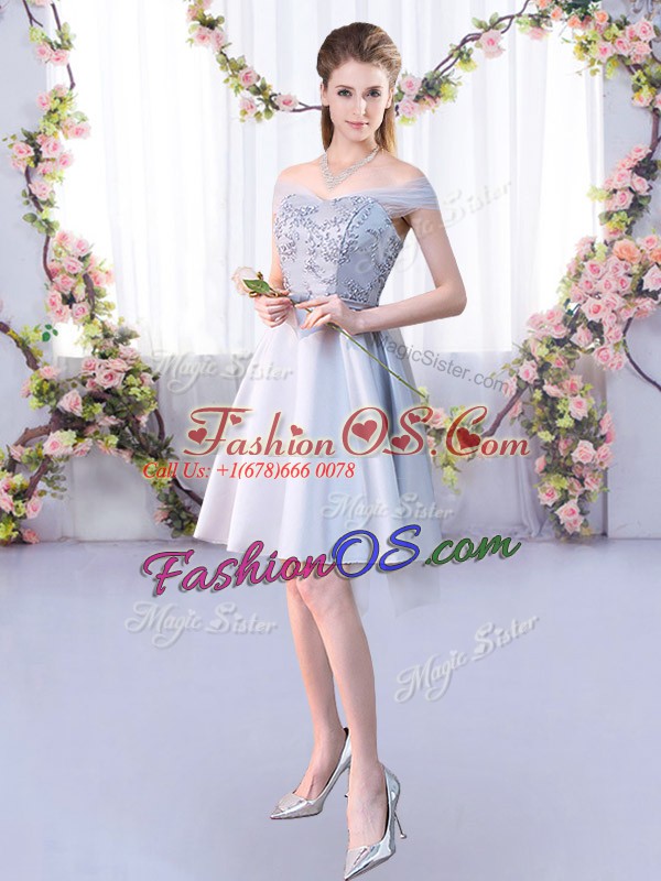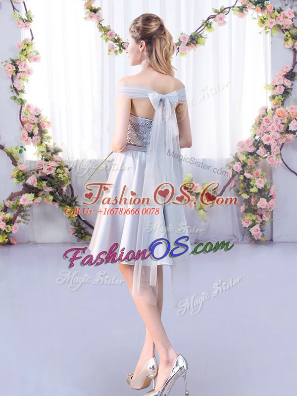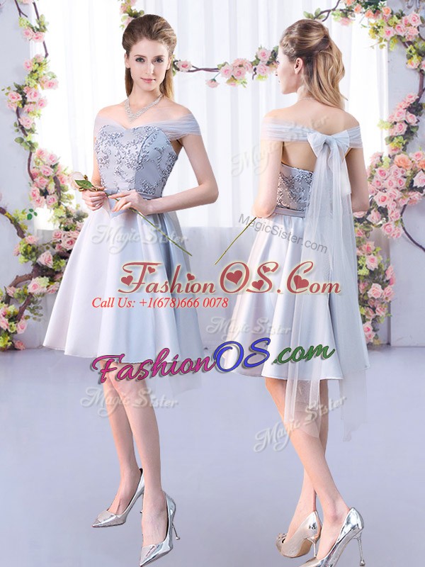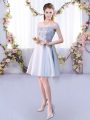 Knee Length Lace Up Dama Dress for Quinceanera Silver for Prom and Party and Wedding Party with Lace