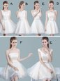 Knee Length Lace Up Wedding Guest Dresses White and In for Prom and Party with Bowknot