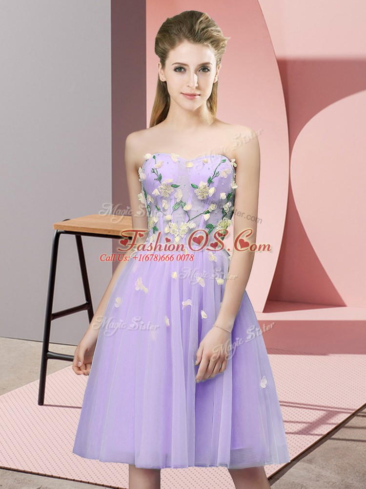 Knee Length Lavender Quinceanera Dama Dress Sweetheart Sleeveless Lace Up