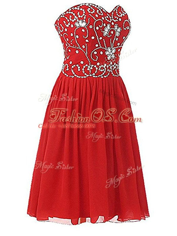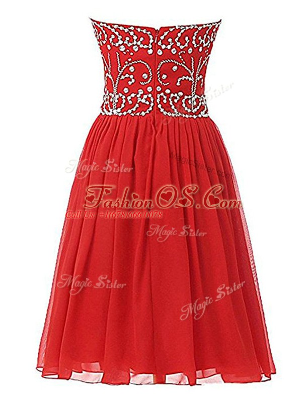Knee Length Red Club Wear Chiffon Sleeveless Beading