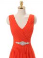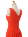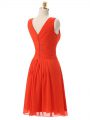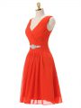 Knee Length Red Prom Gown Chiffon Sleeveless Beading and Ruching