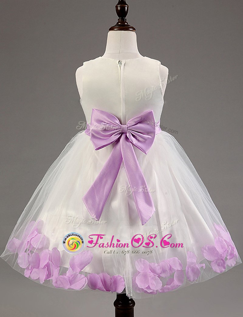 Knee Length White and Lavender Flower Girl Dresses for Less Square Sleeveless Zipper
