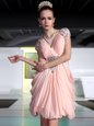 Home >  Prom Dresses >  Perfect Prom Dresses > Knee Length Zipper Prom Gown Peach and In for Prom and Party with Beading
