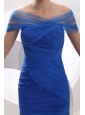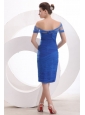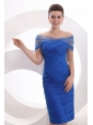 Knee-length Column Off The Shoulder Prom Dress in Blue