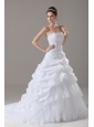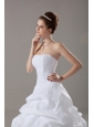 Home >  Wedding Dresses >  Popular Wedding Dresses > Lace A-Line Strapless Fashionable Court Train Wedding Dress Taffeta