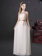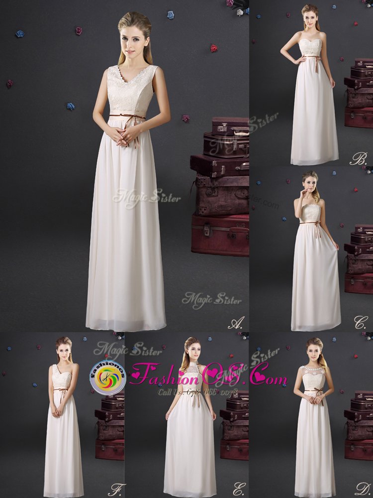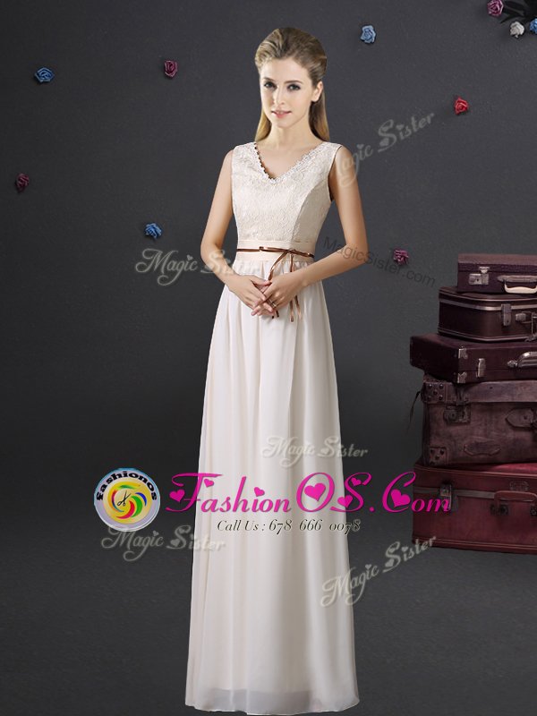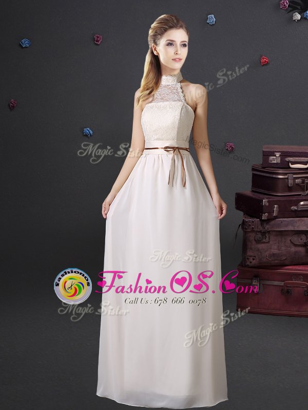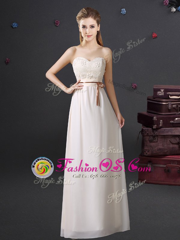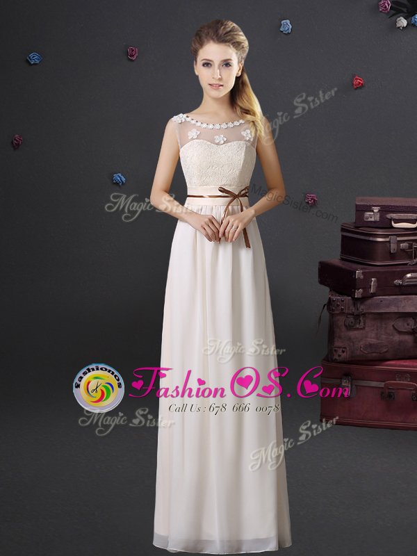 Lace and Appliques and Belt Court Dresses for Sweet 16 White Lace Up Sleeveless Floor Length