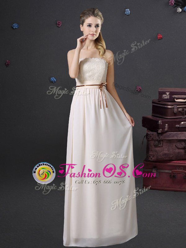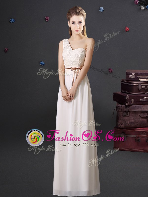 Home >  Special Occasion Dresses >  New Style Dama Dresses > Lace and Appliques and Belt Court Dresses for Sweet 16 White Lace Up Sleeveless Floor Length