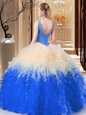 Lace and Appliques and Ruffles Quince Ball Gowns White And Red Zipper Sleeveless Floor Length