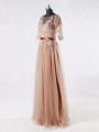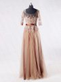 Lace and Appliques Mother Of The Bride Dress Brown Zipper Half Sleeves Floor Length