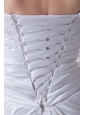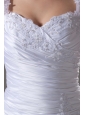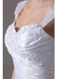 Romantic and elegant style dresses have a certain charm that never goes out of style! This one is the exact one you are looking for! This wedding gown features a wide strap bedecked by lace appliques and the whole bodice is ruched to curve your figures. The waist is flattered so slim by exquisite ruching and elegant appliques. The a line skirt falls quite puffy to flatters most figures and is also decorated with lace appliques.The bottom of the puffy skirt extends into a gorgeous court train in the back to add more elegance and modesty to this already gorgeous gown. lace up back completes the back wonderfully.