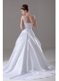 Lace and Appliques Straps A-Line / Princess Straps Court Train Taffeta Wedding Dress
