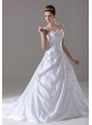 Home >  Wedding Dresses >  Affordable Wedding Dresses > Lace and Appliques Straps A-Line / Princess Straps Court Train Taffeta Wedding Dress