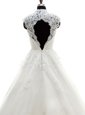 Lace and Appliques Wedding Gown White Clasp Handle Cap Sleeves With Brush Train
