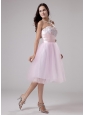 Home >  Prom Dresses >  Popular Prom Dresses > Lace and Beading Strapless Tulle Tea-length A-Line Lace and Beading Prom Dress Pink