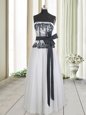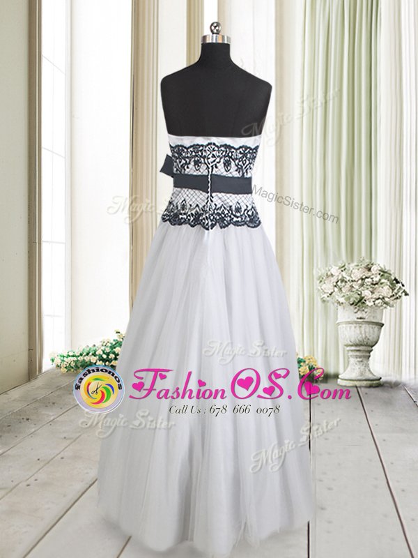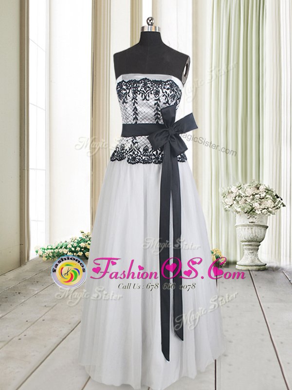 Lace and Bowknot Homecoming Party Dress White And Black Zipper Sleeveless Floor Length