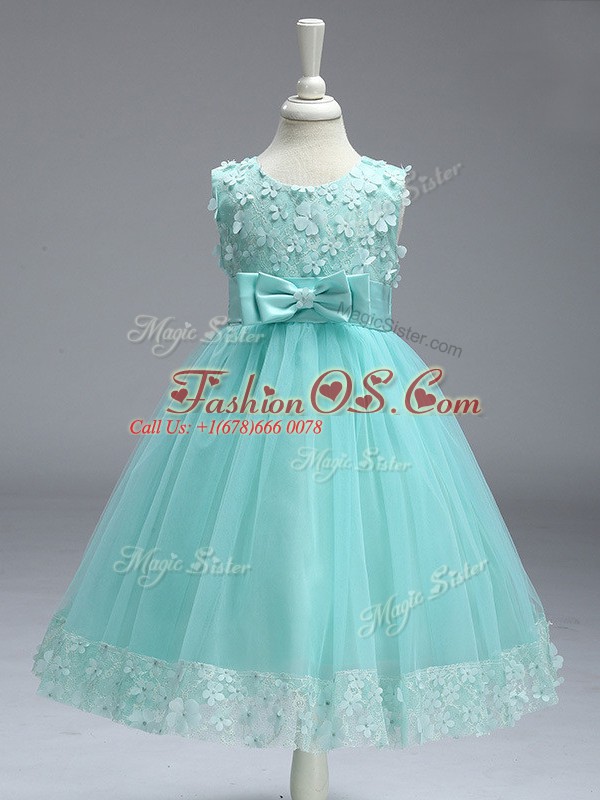 Lace and Bowknot Little Girls Pageant Gowns Apple Green Zipper Sleeveless Knee Length