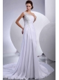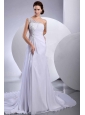 Lace Court Train One Shoulder Chiffon Wedding Dress Empire