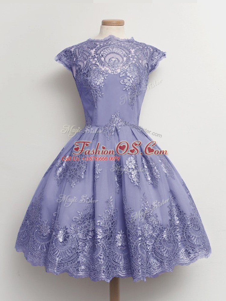 Home >  Special Occasion Dresses >  Dama Dresses 2018 > Lace Dama Dress Lavender Lace Up Cap Sleeves Knee Length
