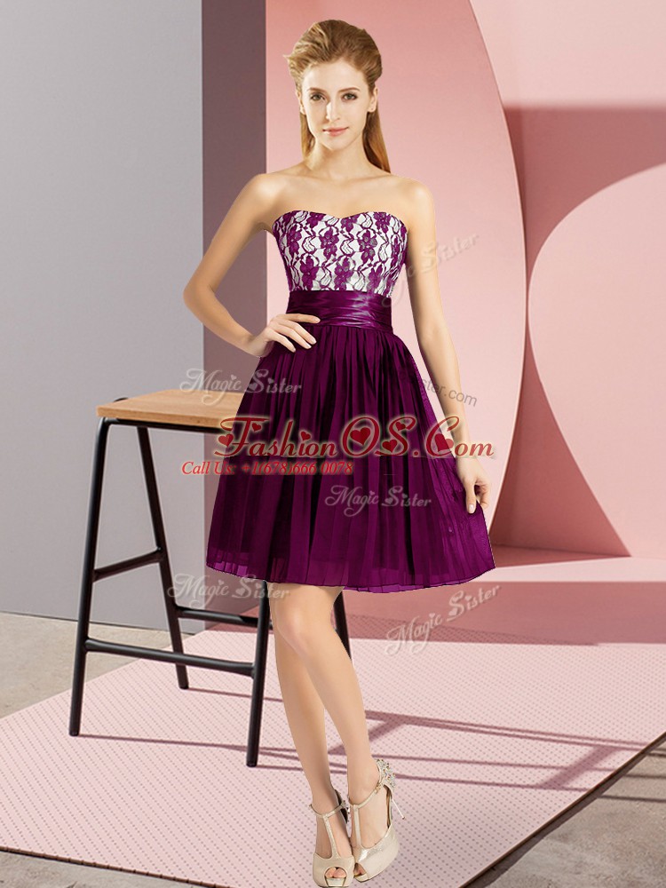 Lace Dark Purple Zipper Sleeveless Mini Length