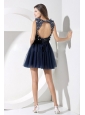 Lace Decorate Bodice A-line Navy Blue Straps Mini-length Backless 2013 Prom Dress