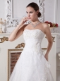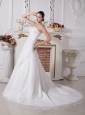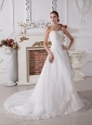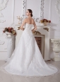 Lace Decorate Bodice A-line Strapless Organza Court Train 2013 Wedding Dress