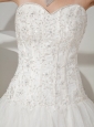 This wedding gown is a perfect dress combined by lace and organza fabric. This kind of wedding dress features its strapless design in a-line silhouette with lace decorations and beading. The niftic A-line dress features a shape that is fitted around the bodice and flows out to the ground, resembling the outline of an uppercase. A zipper up colosure with a pretty court train completes this traditional wedding dress.