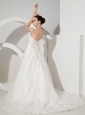Lace Decorate Bodice Sweetheart Neckline Court Train Organza 2013 Wedding Dress