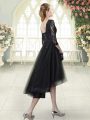 Lace Dress for Prom Black Lace Up Half Sleeves High Low