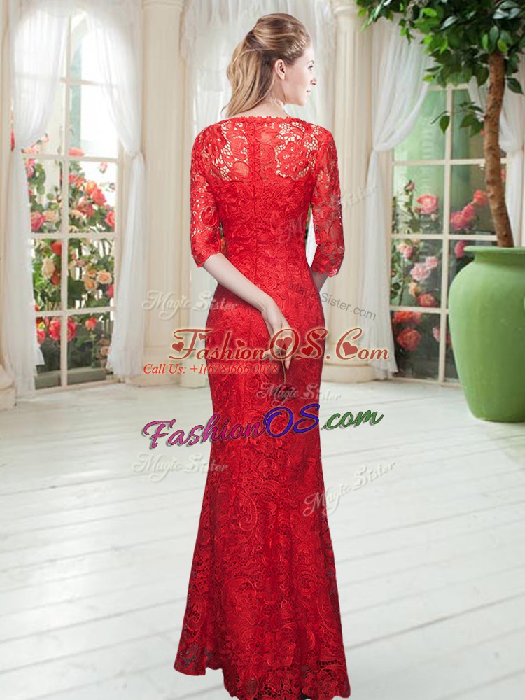 Lace Half Sleeves Floor Length Prom Dresses and Lace