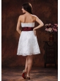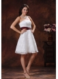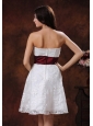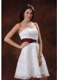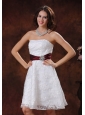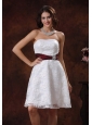 Lace Over Shirt Elegant Short Wedding Dress With Wine Red Belt In Selma Alabama